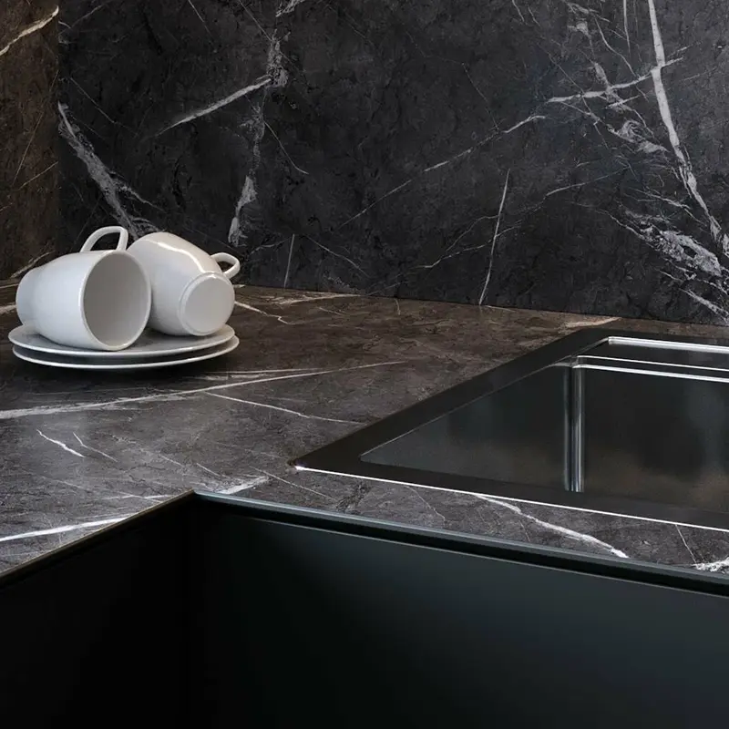 Мрамор и гранит в столешницах, полах и стенах — защита от пятен, кислоты и царапин.