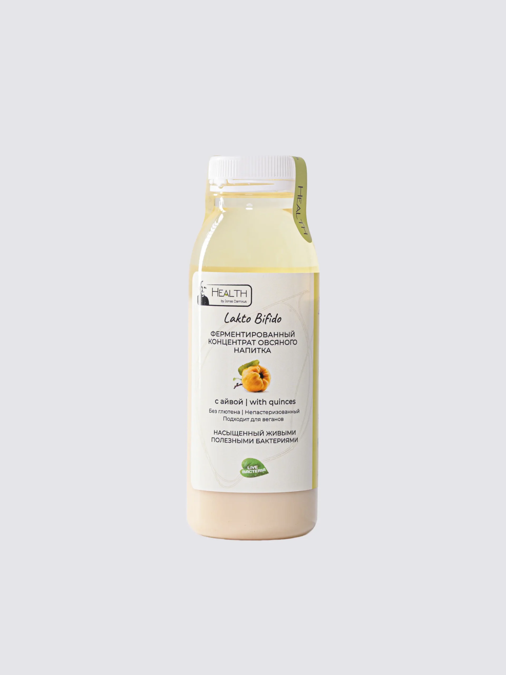 • состав: вода питьевая, овсяные хлопья 18%, сок айвы 8%, 26 штаммов бифидо- и лактобактерий;