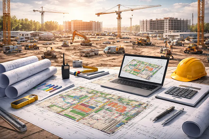 Процесс включает разработку концепции организации строительства, схемы расположения объектов, планирование ресурсов и мероприятий по безопасности.