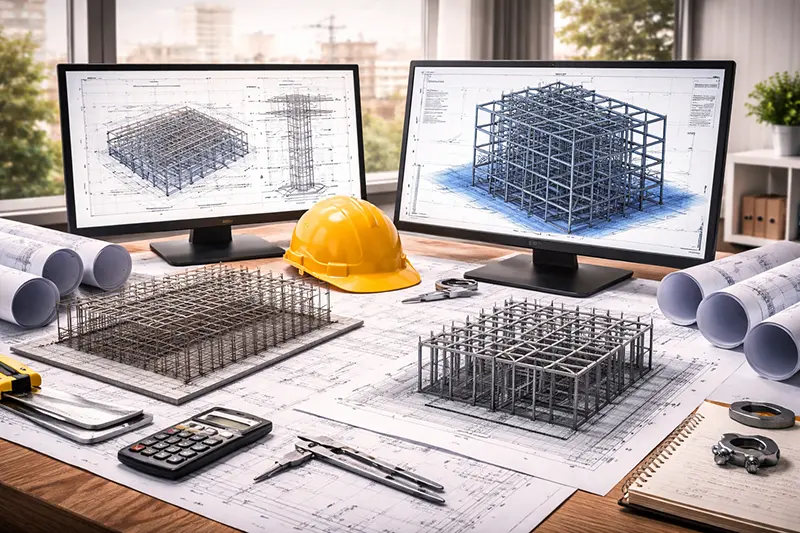 Разработка проектной документации для фундамента, каркасов, перекрытий, колонн, лестниц и других элементов из железобетона.